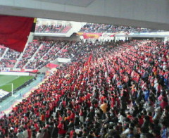 試合開始!始まりました。名物応援団長。相変わらず試合を見ないスタイル。